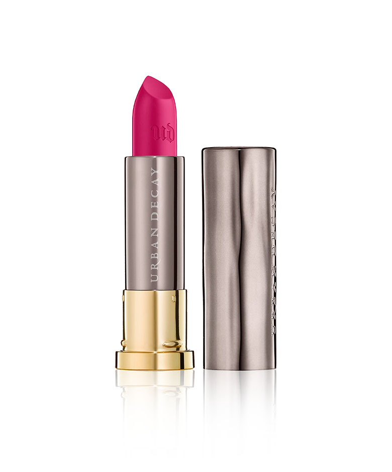 Vous avez trouvé votre couleur fétiche ? Il ne reste plus qu’à choisir le type de produit. Mat ou brillant ? Longue tenue ou facile à enlever ? Avec une couleur flashy, un rouge à lèvres mat et longue tenue est ce qu'il y a de plus pratique pour éviter de voir votre visage ou vos dents virer au bleu, vert ou mauve. Disponible dans toutes les couleurs de l'arc-en-ciel, le rouge à lèvres Vice Comfort d'Urban Decay ne se fait pas la malle.