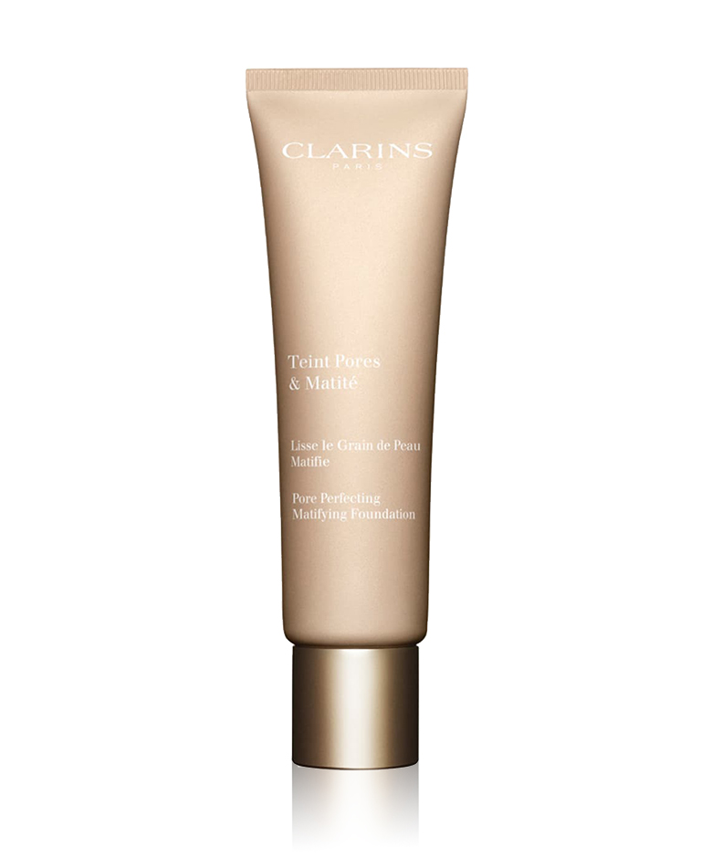 Optez par exemple pour le Fond de Teint Pores & Matité de Clarins. Il unifie et matifie le teint, lisse les rides et affine le grain de peau.