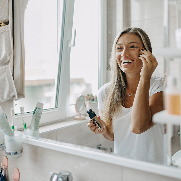 Goede skincare routine: Een gehydrateerde huid houdt make-up beter vast. Gebruik een lichte dagcrème en laat deze goed intrekken voordat je begint met je make-up.