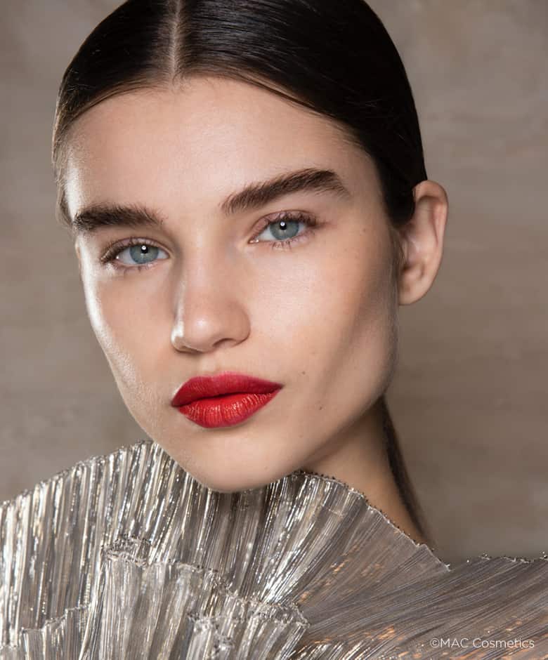 Thuis hoef je geen mondmasker te dragen: tijd om die lippen te laten knallen! Ook Oscar de la Renta koos voor de klassieke rode lip look voor zijn herfst-/wintercollectie. Op zoek naar een fijne rode lippenstift? Lippenstift ‘Brave Red’ van M.A.C heeft een unieke pigmentatie en voelt toch ultracomfortabel aan.