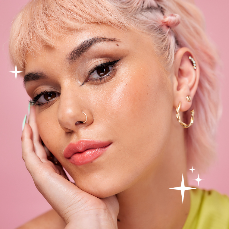 Een glowy skin als party make-up look. Ofwel een stralende teint die het gezicht een gloed geeft. Iedereen droomt ervan. En dat zien we ook op TikTok terugkomen, want de hashtag glow boomt als trendy topic met maar liefst 1,9 miljoen video’s. Het geheim om die gloed te krijgen? Hydratatie! Kies voor producten verrijkt met hyaluronzuur, die je huid diep voeden en meer laten stralen.