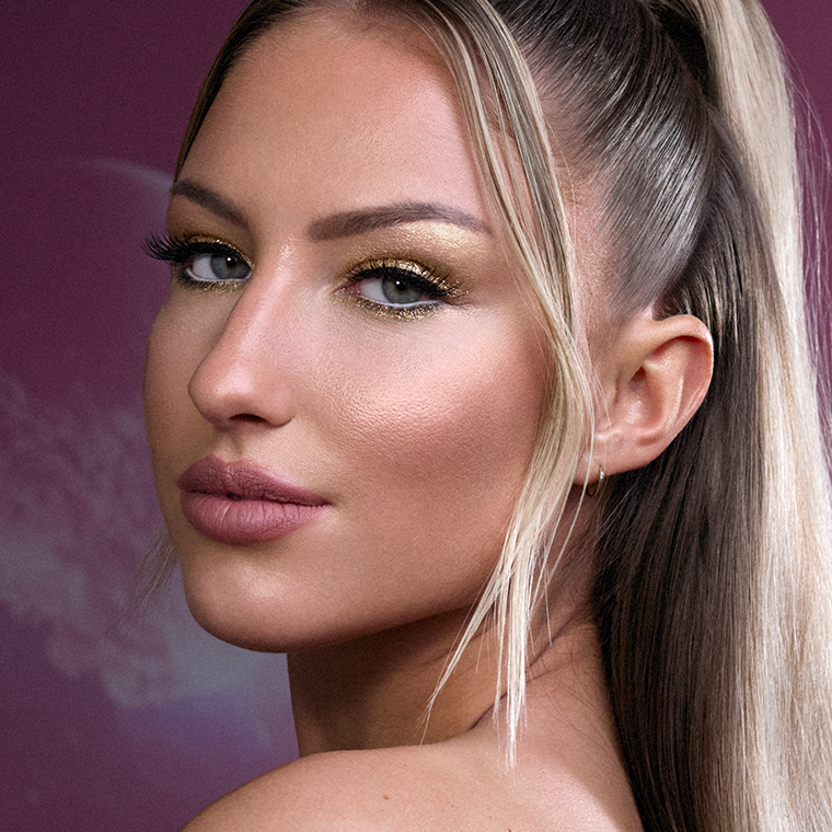 End of year staat voor gold. Gouden verpakkingen, gouden slingers, gouden kleren en ook gouden make-up. Om sprankelende golden eyes te krijgen, breng je eerst een gouden creamy oogschaduw aan over het hele ooglid. Graag meer intensiteit? Geef de look dan een twist door een donkerdere tint van buiten naar binnen te blenden en zo een smokey eye te creëren. Werk als laatste stap af met jouw favoriete mascara of valse wimpers om de look nog dramatischer en helemaal compleet te maken.
