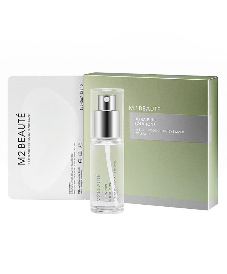 Omdat de huid van je ogen heel dun is, moeten oogproducten ultralicht zijn. Nieuw is de second-skin textuur, zoals van M2 Beauté Ultra Pure Solutions Hybrid Second Skin Eye Mask. De pads bestaan voor 92% uit collageen en worden met Pure Water Spray geactiveerd.