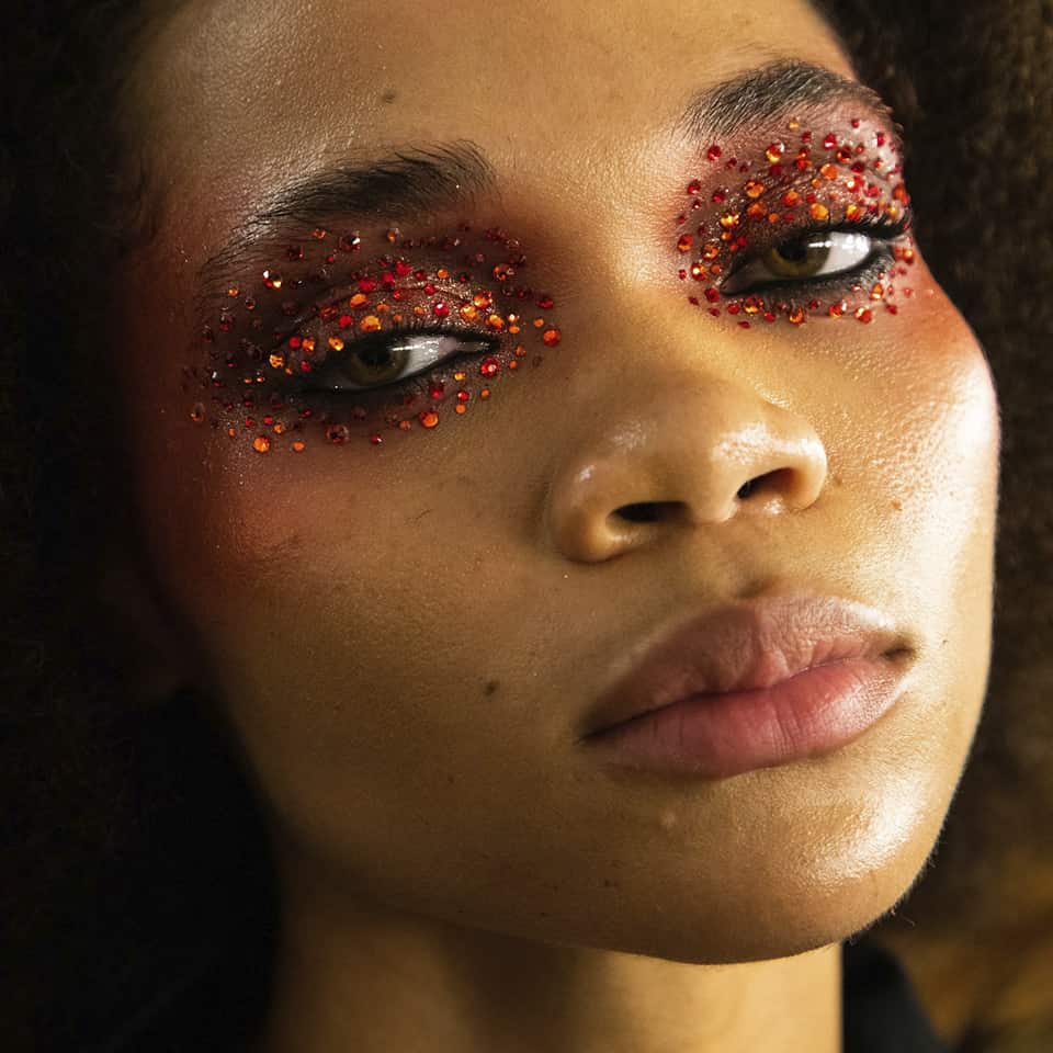 Deze lente nemen we je terug naar de rock & roll 70’s met gekleurde fake crystals rond de ogen en een matching, shimmery oogschaduw. Door een diepzwarte eyeliner, zoals de Contour Clubbing van Bourjous, in de binnenste lijntjes van je ogen aan te brengen, wordt jouw look stoer en glamorous tegelijk.