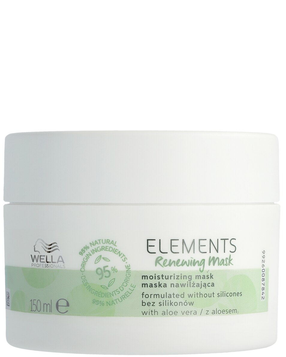 Wella Professionals Elements Renewing Mask is een hydraterend en ontwarrend haarmasker met kalmerende ingrediënten van natuurlijke oorsprong, voor een milde verzorging. voor glad en glanzend haar. Verrijkt met aloë vera, vitamine E en Olive Essence om het haar te beschermen tegen schade en voor een gladde, glanzende finish. Het haarmasker heeft een anti-frizz effect en is geschikt voor de gevoelige hoofdhuid. Gebruik naast Elements shampoo ook conditioner en masker voor het beste resultaat.